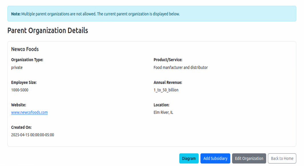 Most importantly, this hierarchical structure serves as the foundation for the AI component of our application. The role-business_unit-subsidiary data provides critical context that enables our LLM to consistently understand organizational relationships and produce high-quality, relevant responses. By mapping these relationships clearly, we ensure that AI-generated insights are properly contextualized within your specific organizational structure, leading to more accurate and useful recommendations.